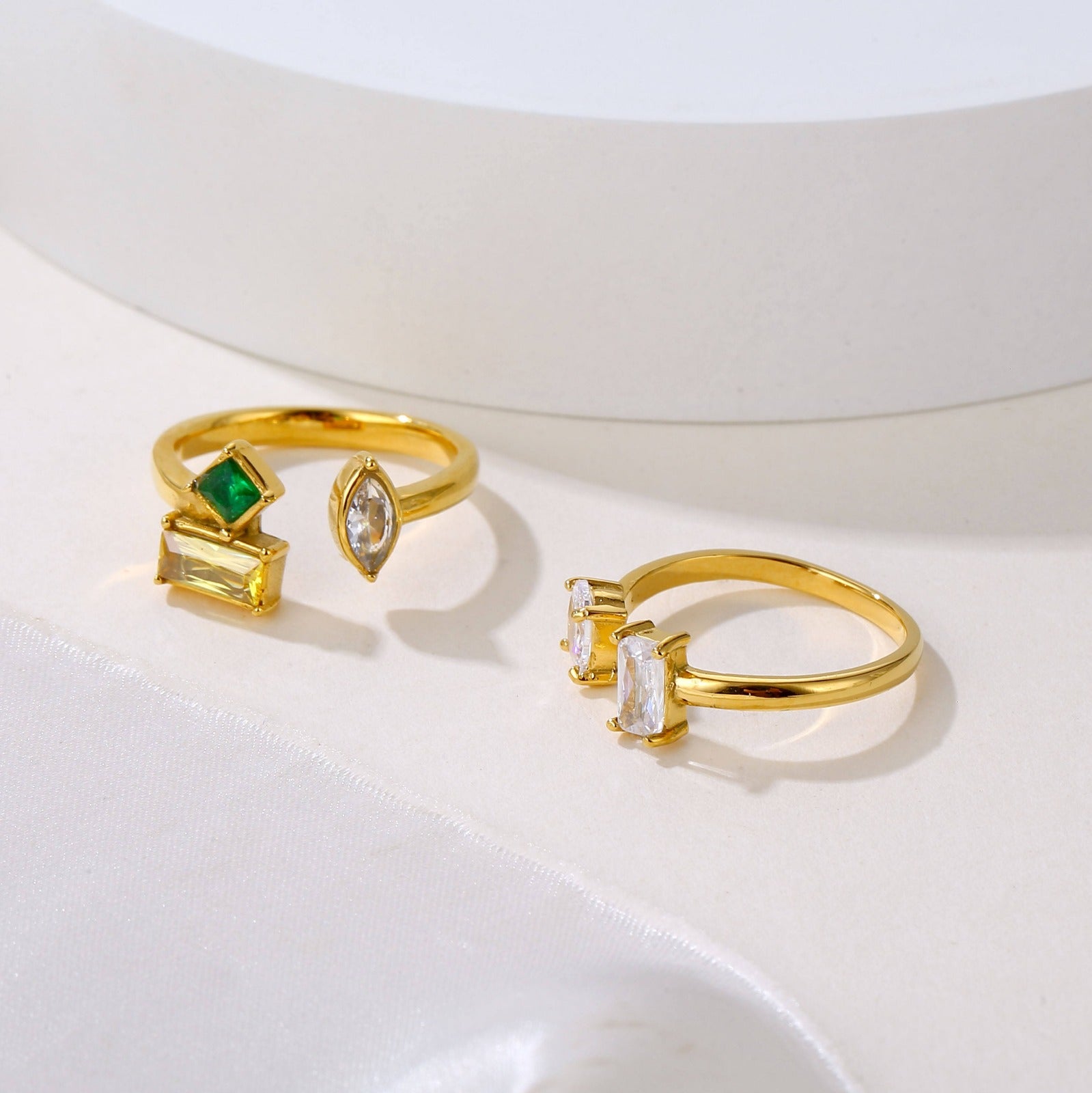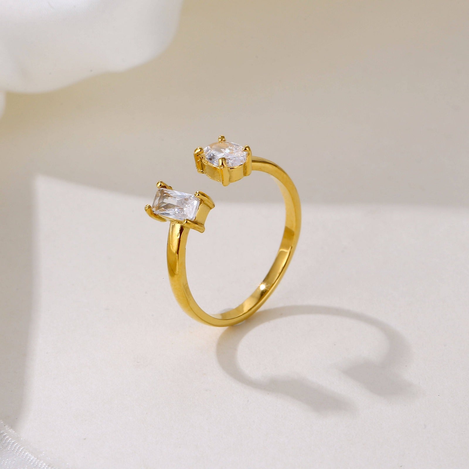 Expertly crafted from premium stainless steel and finished with a rich gold PVD plating, this ring combines enduring durability with high-end brilliance. The sparkling cubic zirconia stones are precisely set to capture and reflect light beautifully, adding a touch of luxury to any outfit.